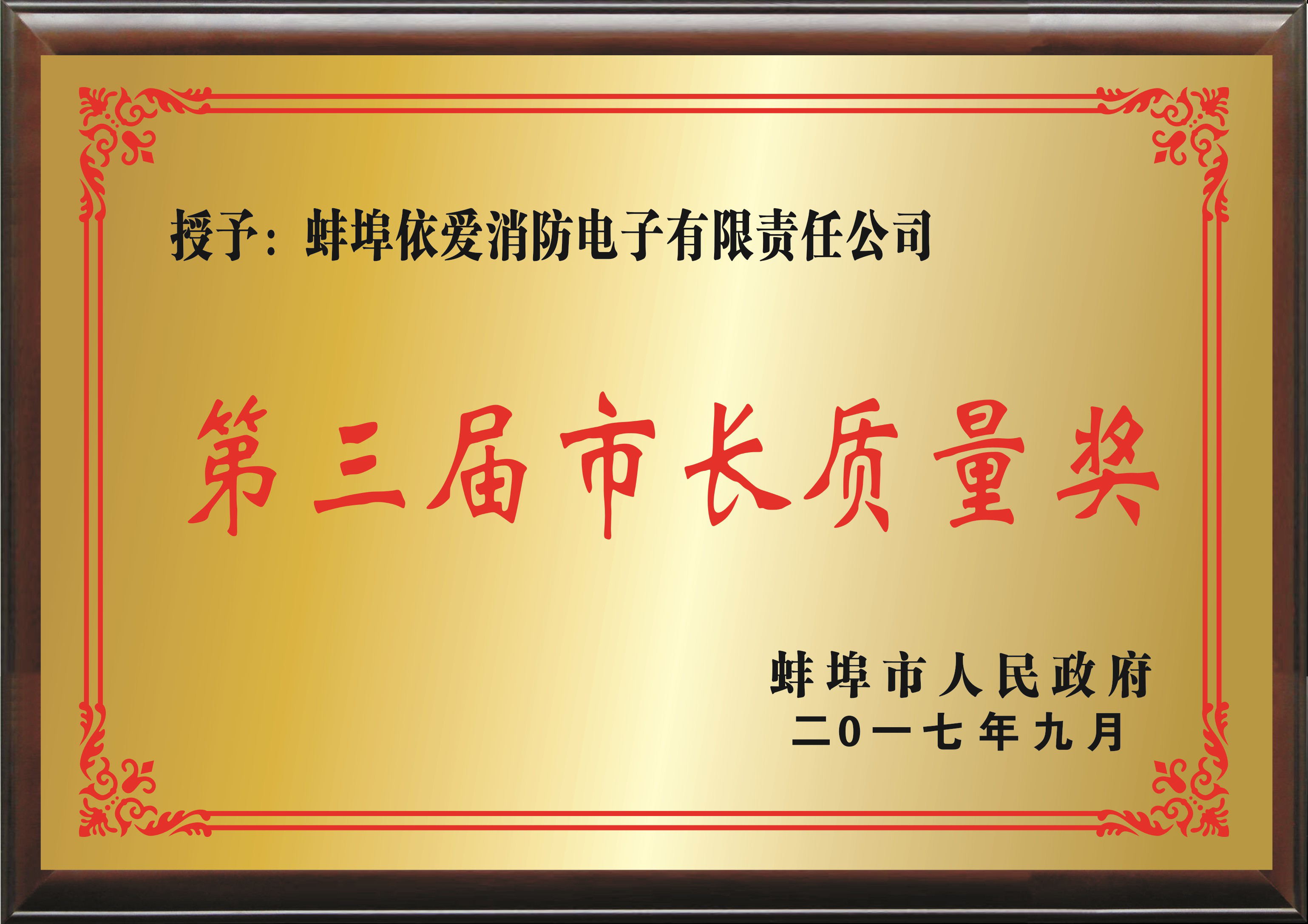 依愛(ài)消防榮獲蚌埠市長(zhǎng)質(zhì)量獎(jiǎng)